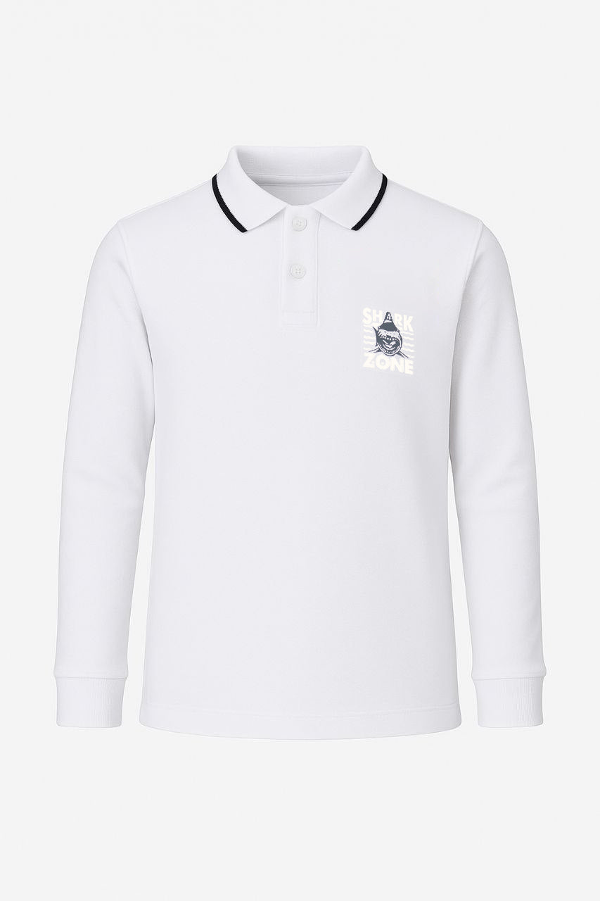 بلوزة ولادي كم طويل , لون أبيض , مصنوع من القطن الناعم , مثالي للمدرسة. يتميز بياقة بولو الأنيقة تضيف لمسة من الرقي والعملية. مريح طوال اليوم، ويضفي مظهراً مرتباً وجذاباً