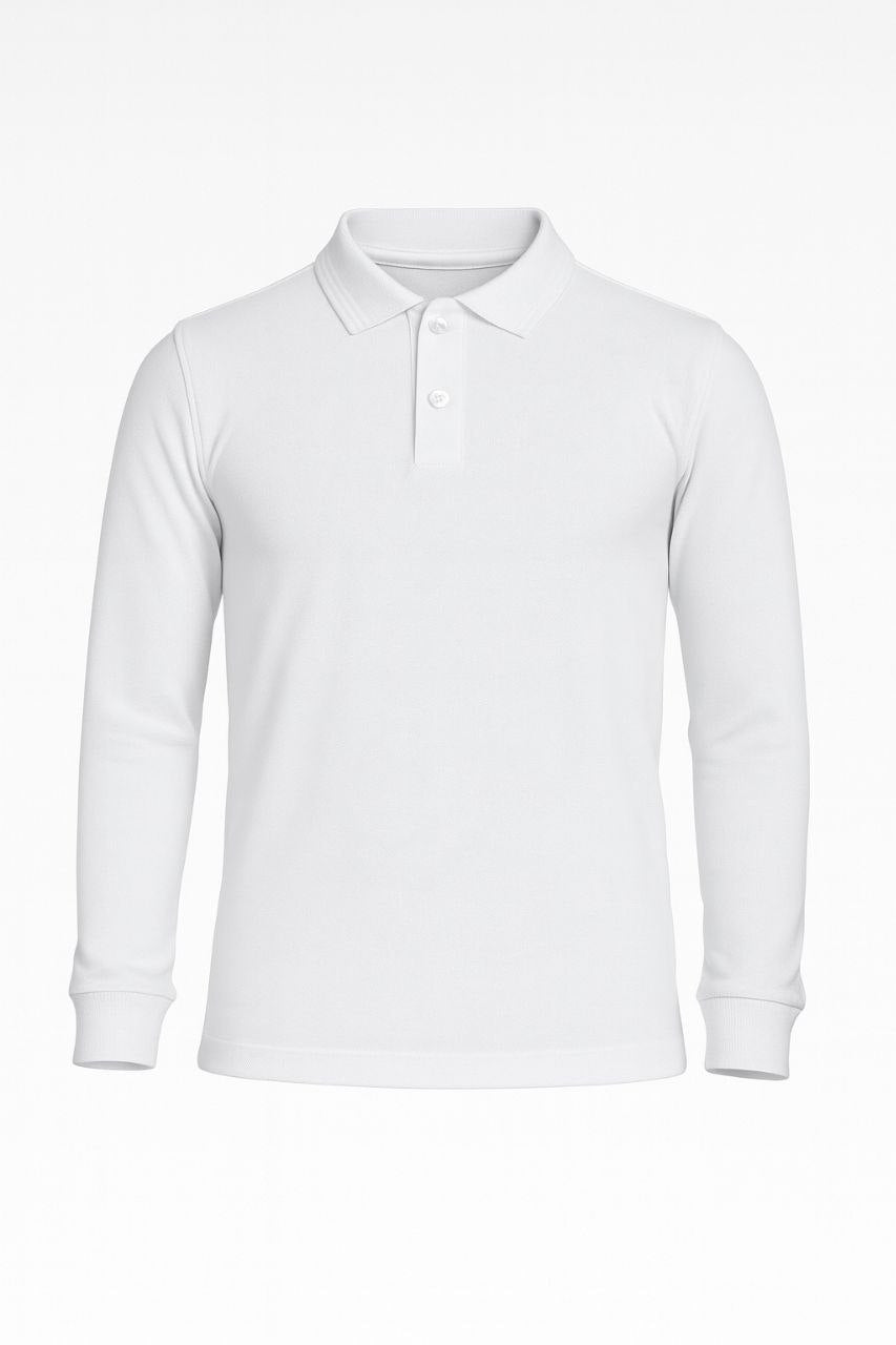 بلوزة ولادي كم طويل , لون أبيض , مصنوع من القطن الناعم , مثالي للمدرسة. يتميز بياقة بولو الأنيقة تضيف لمسة من الرقي والعملية. مريح طوال اليوم، ويضفي مظهراً مرتباً وجذاباً