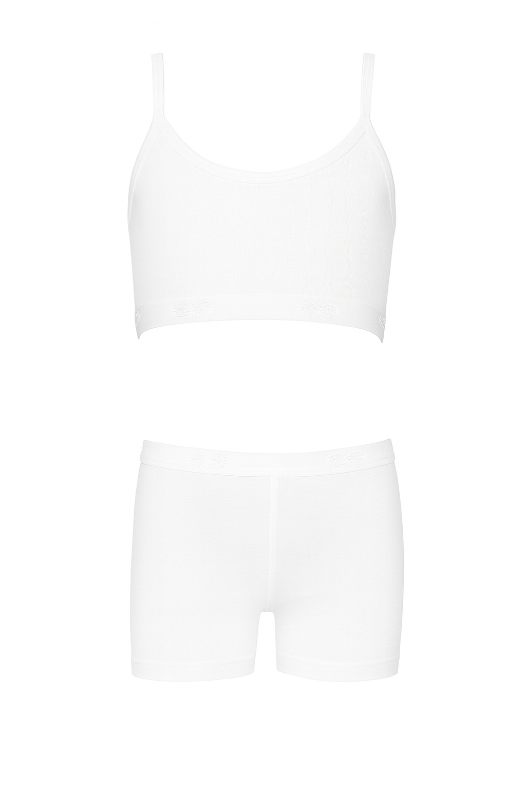 طقم داخلي بناتي قطعتين فانيلا قصيرة علاق رفيع + شورت