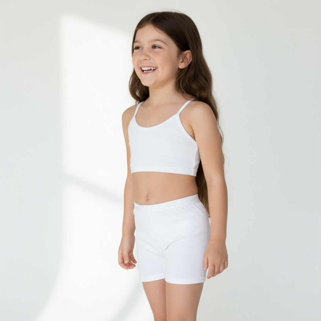 طقم داخلي بناتي قطعتين فانيلا قصيرة , علاق رفيع + شورت , مصنوع من أجود أنواع الأقمشة القطنية الناعمة و المضادة للحساسية , صنع خصيصا لراحة طفلتكم.