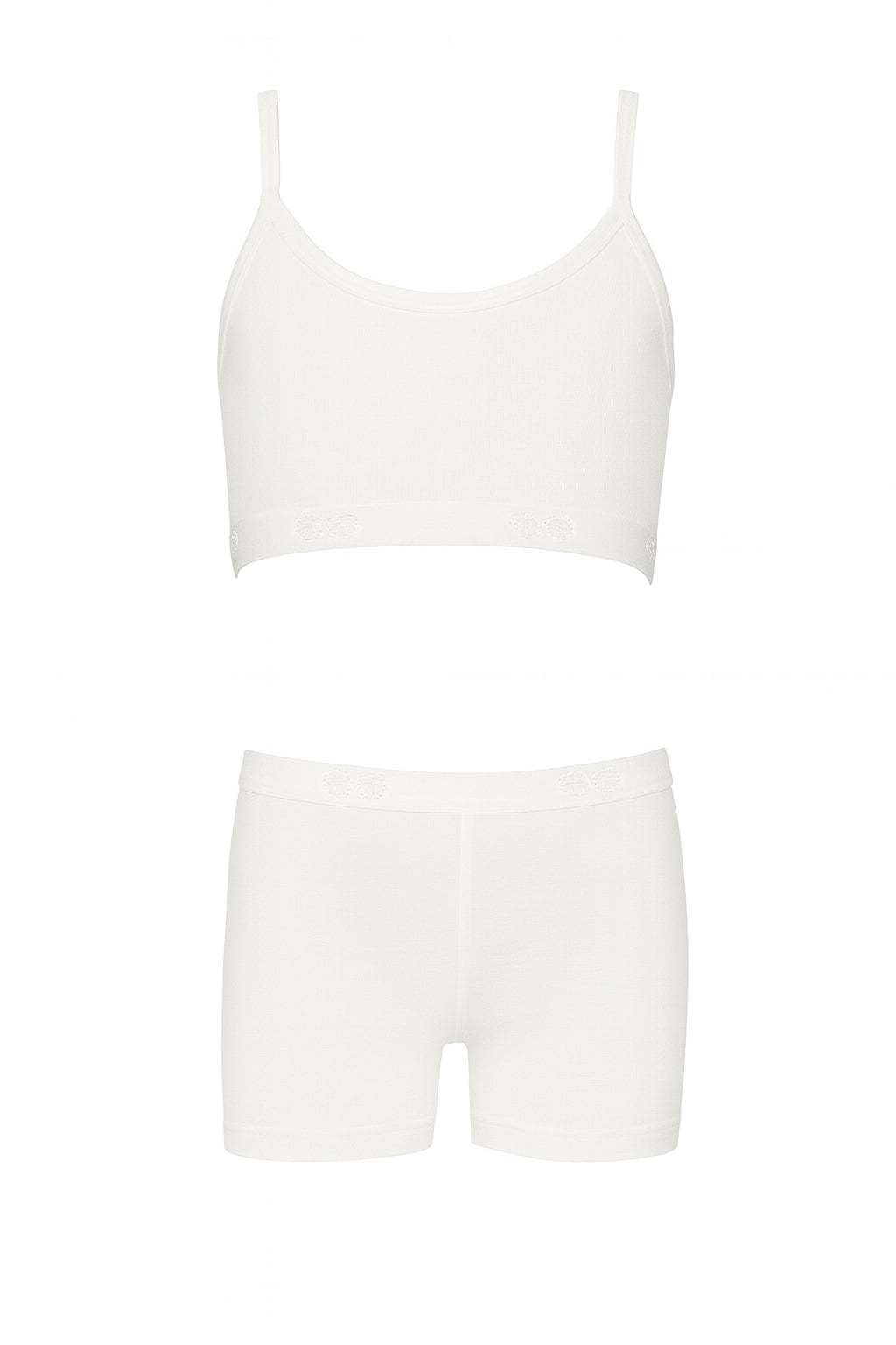 طقم داخلي بناتي قطعتين فانيلا قصيرة علاق رفيع + شورت